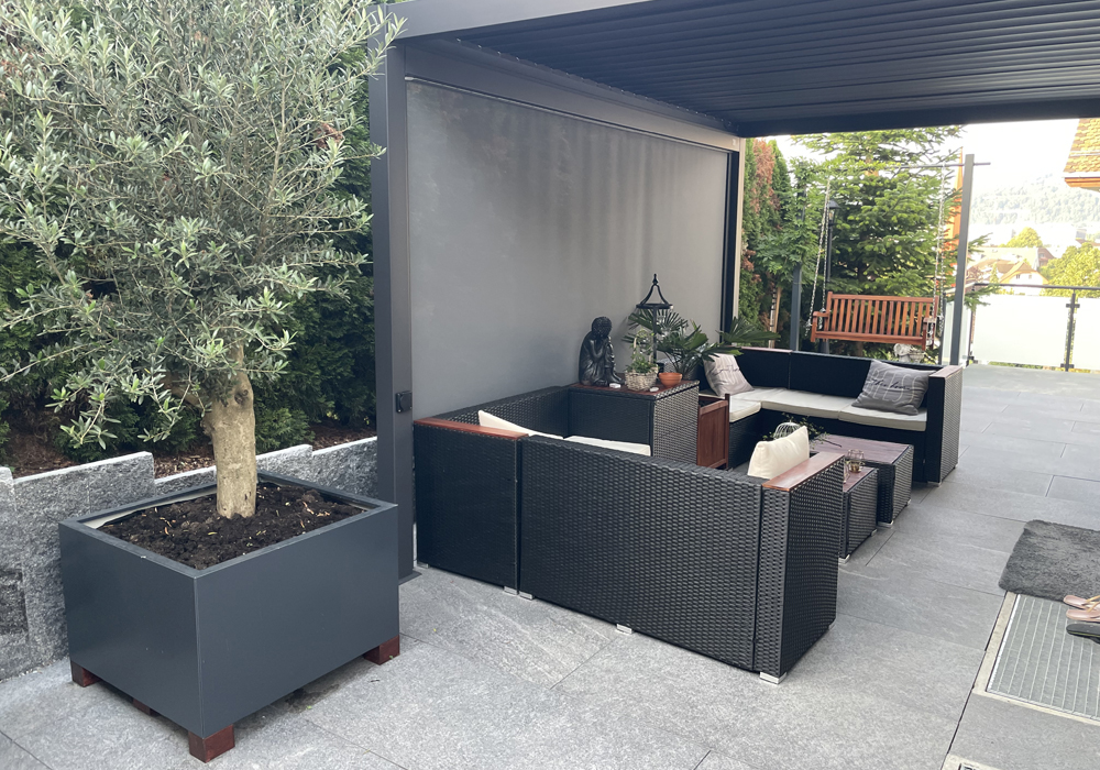 Gartenumgestaltung mit Grillplatz und Velounterstand